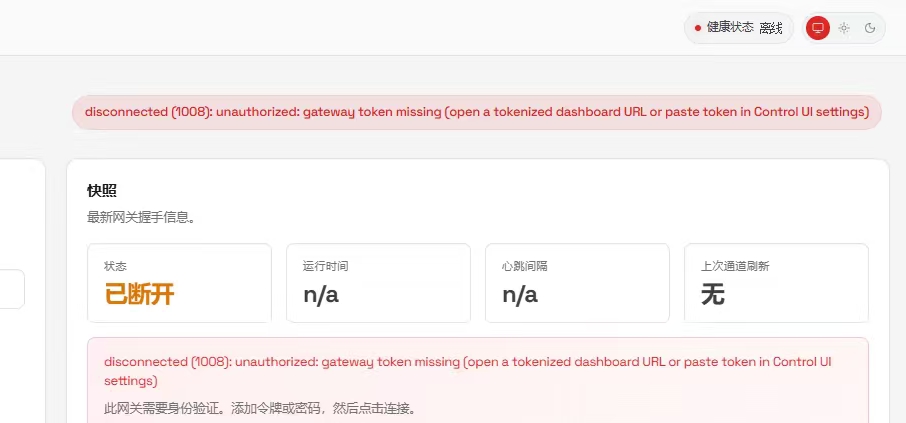 问题一:缺少网关令牌